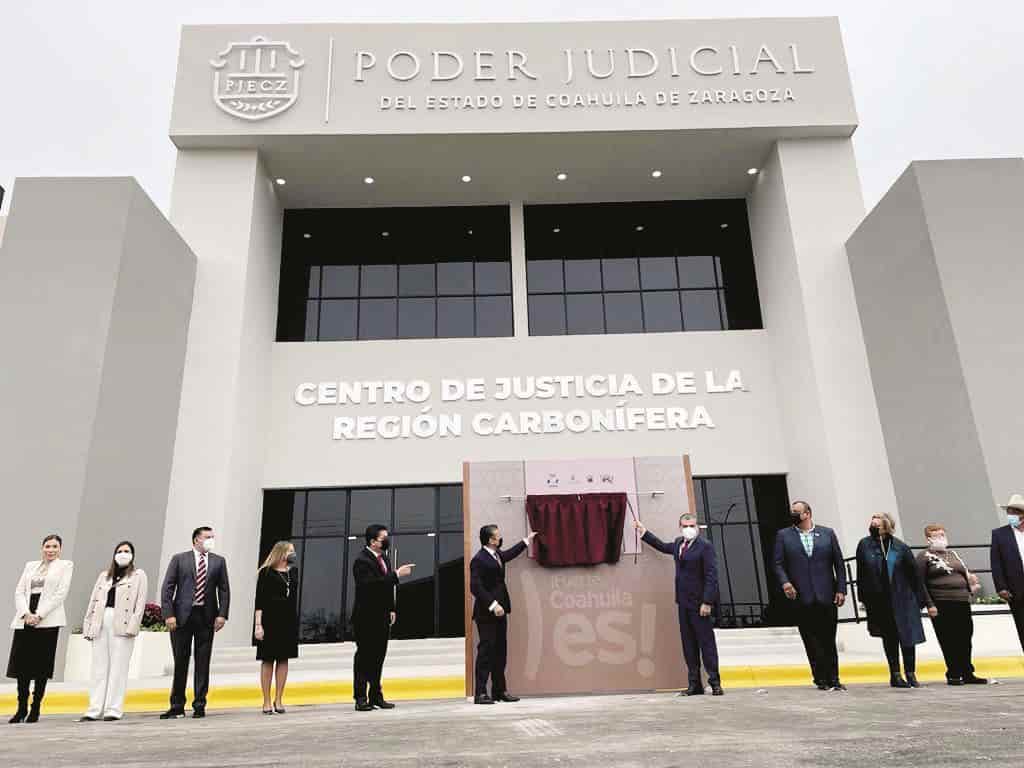 SAN JUAN DE SABINAS, COAH.- “En Coahuila hay Estado de Derecho en todas las regiones, y hay que valorar este gran esfuerzo de todos los sectores de la sociedad y los tres Poderes de Gobierno. Felicidades por este Centro de Justicia que mejorará la calidad de vida de todos los habitantes de la Región Carbonífera”, aseveró el gobernador Miguel Ángel Riquelme Solís al inaugurar el Centro de Justicia Civil y Familiar del Distrito Judicial de Sabinas, con inversión de 40 millones de pesos, en un terreno de 10 mil metros cuadrados.