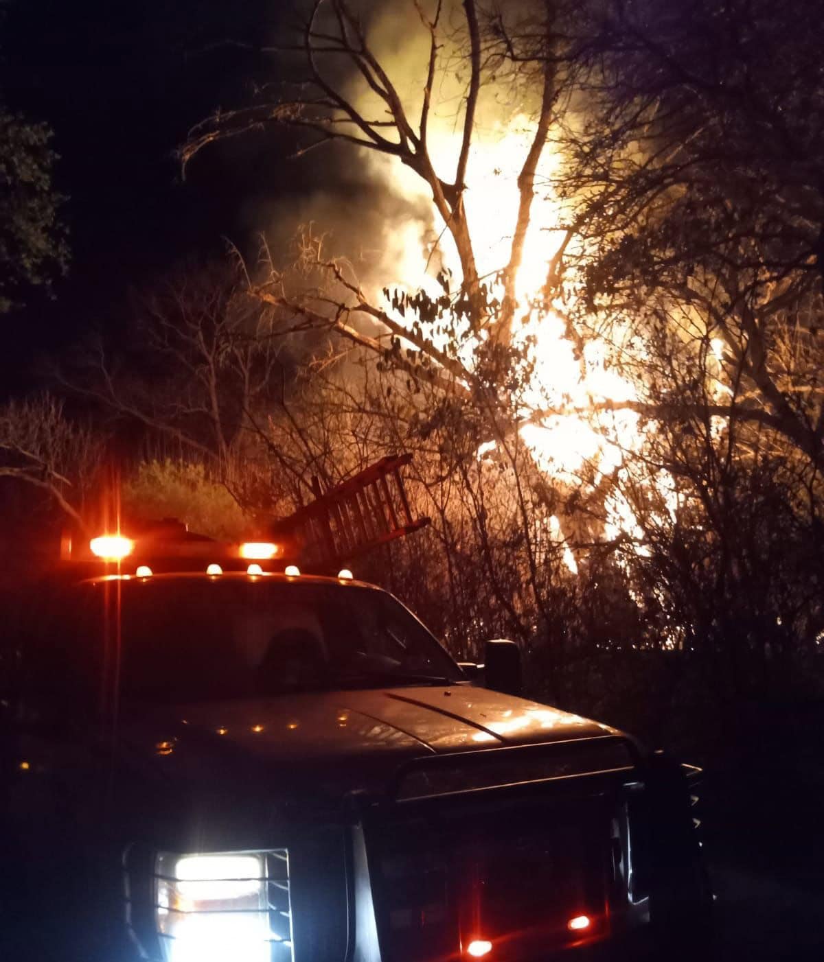 MELCHOR MÚZQUIZ, COAH.- Elementos de la Brigada de Emergencia OMEGA acudieron de manera inmediata al llamado de apoyo tras registrarse un incendio presuntamente provocado en la colonia Infonavit-Oasis del municipio de Múzquiz.