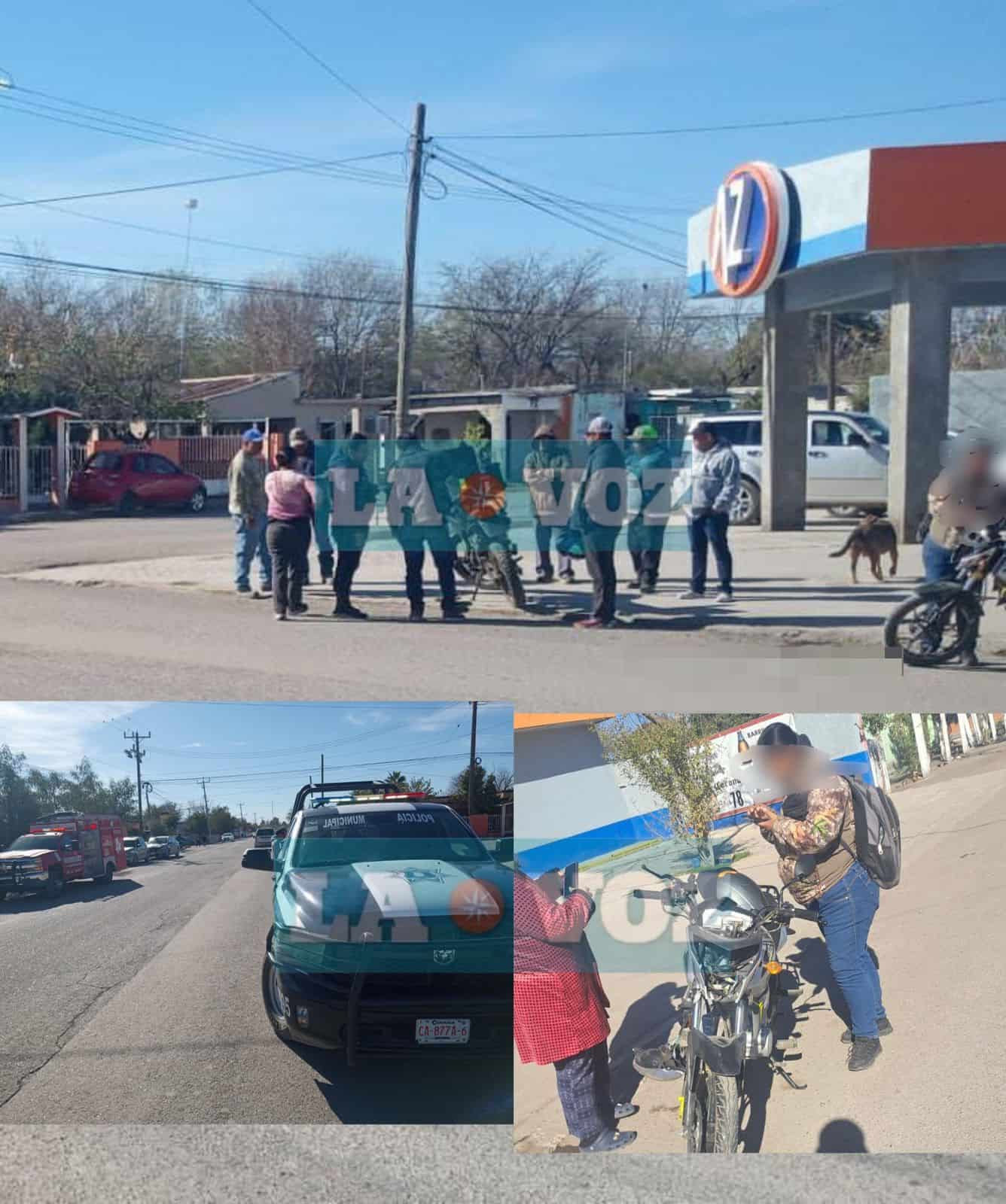 VILLA DE PALAÚ, COAH.- Un aparatoso accidente entre motociclistas registrado en la avenida 5 de febrero y Moctezuma de esta Villa, dejó como saldo una persona lesionada de gravedad, quien fue trasladada de urgencia a la clínica 27 del Instituto Mexicano del Seguro Social (IMSS) para recibir atención médica especializada y posteriormente enviado a una clínica de la ciudad de Nueva Rosita.