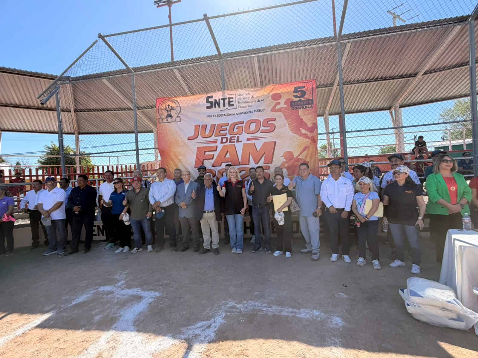 MELCHOR MÚZQUIZ, COAH.- Teniendo como sede el Pueblo Mágico de Múzquiz, la mañana de este viernes, docentes pertenecientes al sector magisterial de la Sección 5 del Sindicato Nacional de los Trabajadores de la Educación que dirige como secretario general a nivel estatal, el maestro Everardo Padrón García, participaron en el evento de los Juegos Deportivos del (FAM) Fondo de Ayuda Mutua, celebrando su 43 aniversario contando además con la presencia de la Presidenta Municipal Laura Jiménez Gutiérrez.