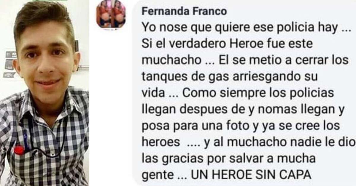 Fernanda Franco, fue una de las personas que reconoció a César Zaldúa, como el verdadero rescatista, al cual nadie hizo mención de sus logros, ya que luego de que las corporaciones de rescate llegaran, el valeroso muchacho continuó auxiliando al personal que se encontraba dentro del Hotel, además de las personas que estaban hospedándose en algunas de las habitaciones y no se habían percatado de los hechos, por lo que César actuó de manera inmediata desalojando a todos los que se encontraban en peligro de asfixia.
