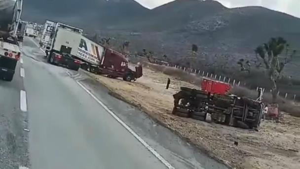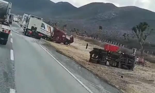 Arteaga, Coahuila.- Un fuerte accidente entre dos tráileres provocó movilización de cuerpos de emergencia y afectaciones a la circulación sobre la carretera federal 57, en el tramo Matehuala–Saltillo.