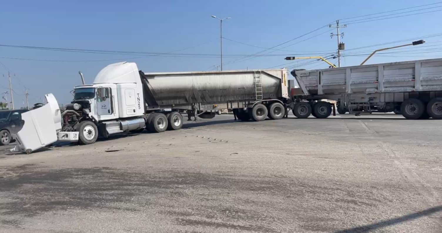 SABINAS, COAH.- Un accidente vial entre dos unidades de carga pesada se registró la mañana de este sábado sobre la Carretera Federal 57, a la altura del cruce con Sierra Santa Rosa, en el sector Las Lomas, dejando como saldo cuantiosos daños materiales y lesiones menores en los conductores.