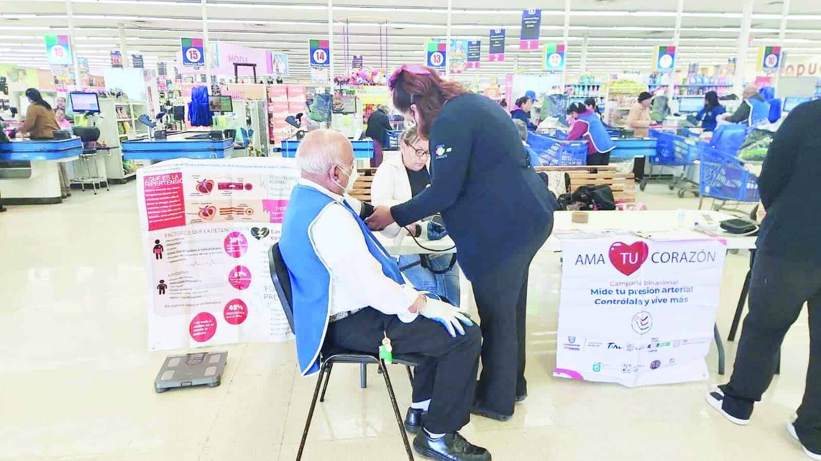 SABINAS, COAH.- La Jurisdicción Sanitaria No. 3, a través del Departamento de Salud del Adulto Mayor, llevó a cabo la Campaña Binacional 'AMA TU CORAZÓN' en el Centro Comercial Súper Gutiérrez Fundadores de Sabinas. La jornada tuvo como propósito sensibilizar a la población sobre la importancia de cuidar la salud cardiovascular y prevenir enfermedades crónicas que afectan principalmente a los adultos mayores.