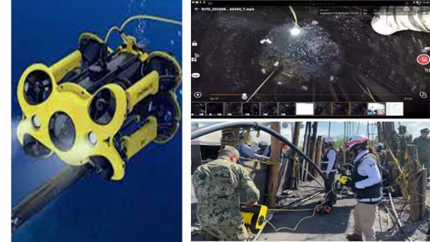 Como se recordará ayer se incorporó un dron submarino, el cual cuenta con una cámara de alta resolución que permitió grabar las condiciones reales en las que se encuentra el área siniestrada y que les permitió evaluar el ingreso de buzos rescatistas y buscadores a la mina inundada, sin poner en riesgo sus vidas.