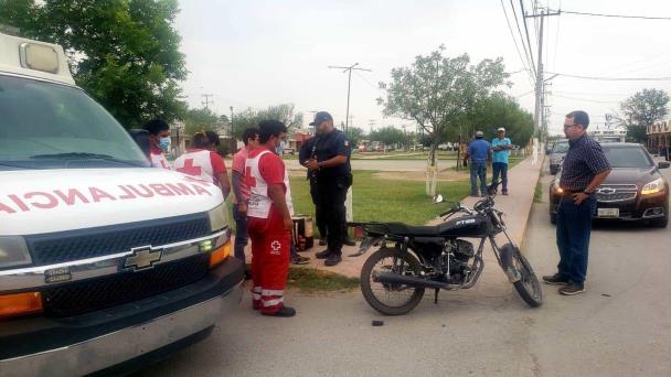 SABINAS, COAH.- Se suscita accidente, en el cruce entre las calles Sabinal y Galeana de la colonia arboledas, en donde un motomandados resulta con heridas leves. El paramédico y operador de Cruz Rojas Sabinas, Arnol Mendoza, informa que ha habido incremento de accidentes en este mes de Mayo.