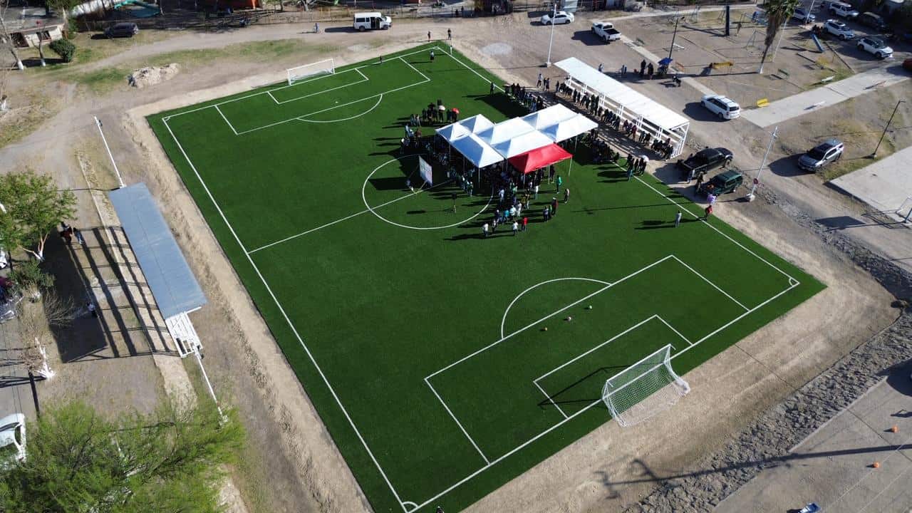 Además, en este mismo municipio fue entregada la nueva cancha de fútbol rápido con pasto sintético, en el lugar conocido como "Cuadra La Loca", en beneficio directo de las familias de San Juan de Sabinas.