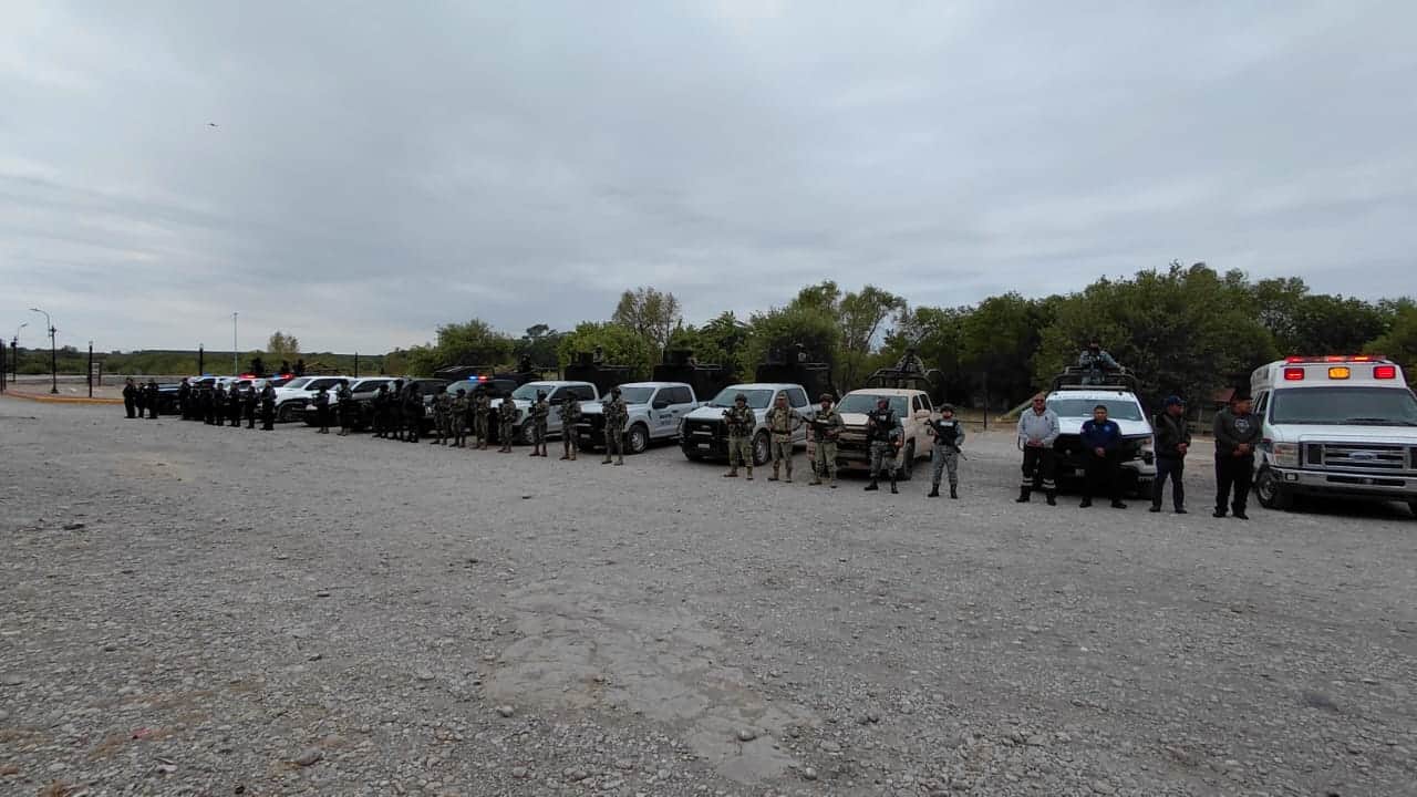 SABINAS, COAH.- La mañana de este sábado, autoridades policiacas de los tres niveles de gobierno, así como el ejército, la marina, la guardia nacional y cuerpos de rescate, dieron inicio al operativo de seguridad vacacional de Semana Santa en esta ciudad. El evento se llevó a cabo en la plaza principal, donde las corporaciones policiacas y castrenses se reunieron para realizar un recorrido hasta las márgenes del río.