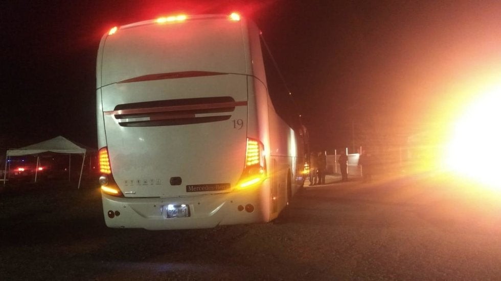 Las víctimas del atraco viajaban en un autobús Mercedes Benz, color blanco, con placas de circulación 906-RV-2, número económico 19, del Estado de México, propiedad de la empresa A&T Aser Tours.
