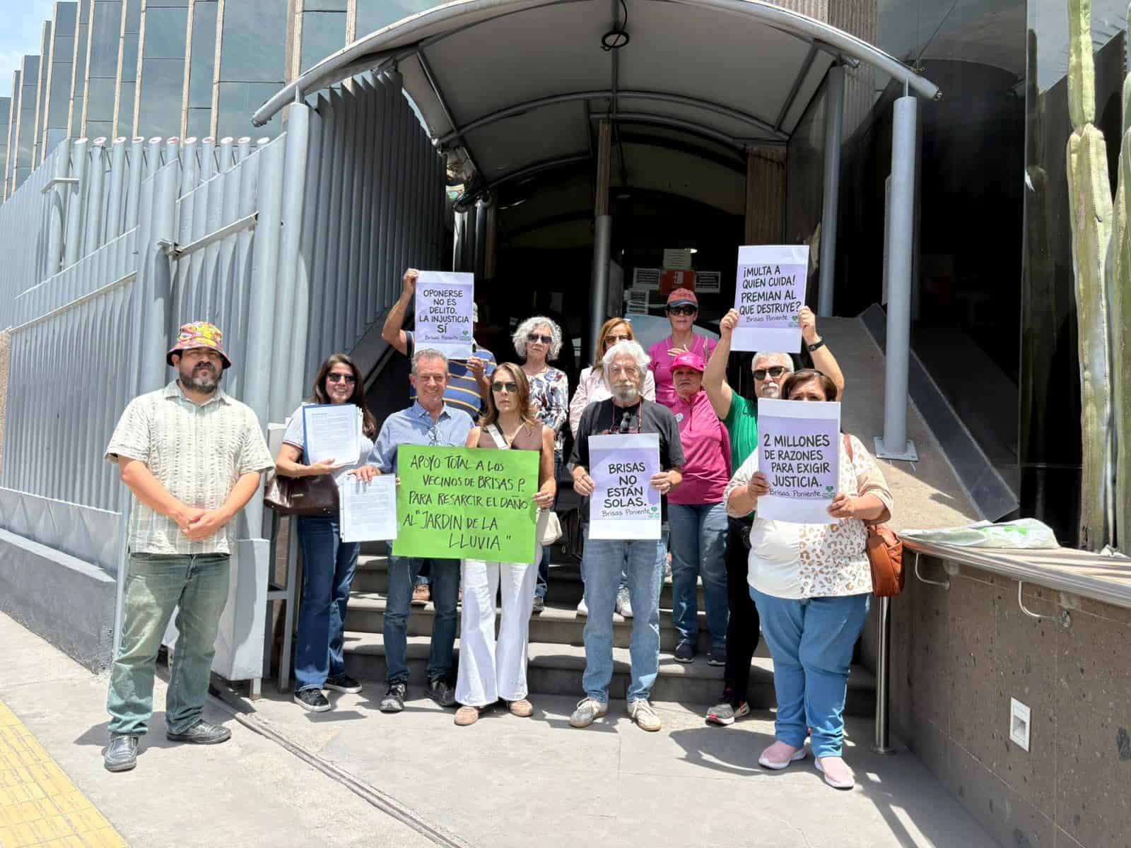 SALTILLO, COAH.- Integrantes de la asociación civil encabezada por Armando López Romero, presidente de la Asociación Defensa en lo Local en Saltillo y representante de vecinos, se manifestaron en el Poder Judicial de la Federación y respondieron a una demanda derivada de un juicio de amparo relacionado con el proyecto ambiental conocido como "Jardín de la Lluvia".