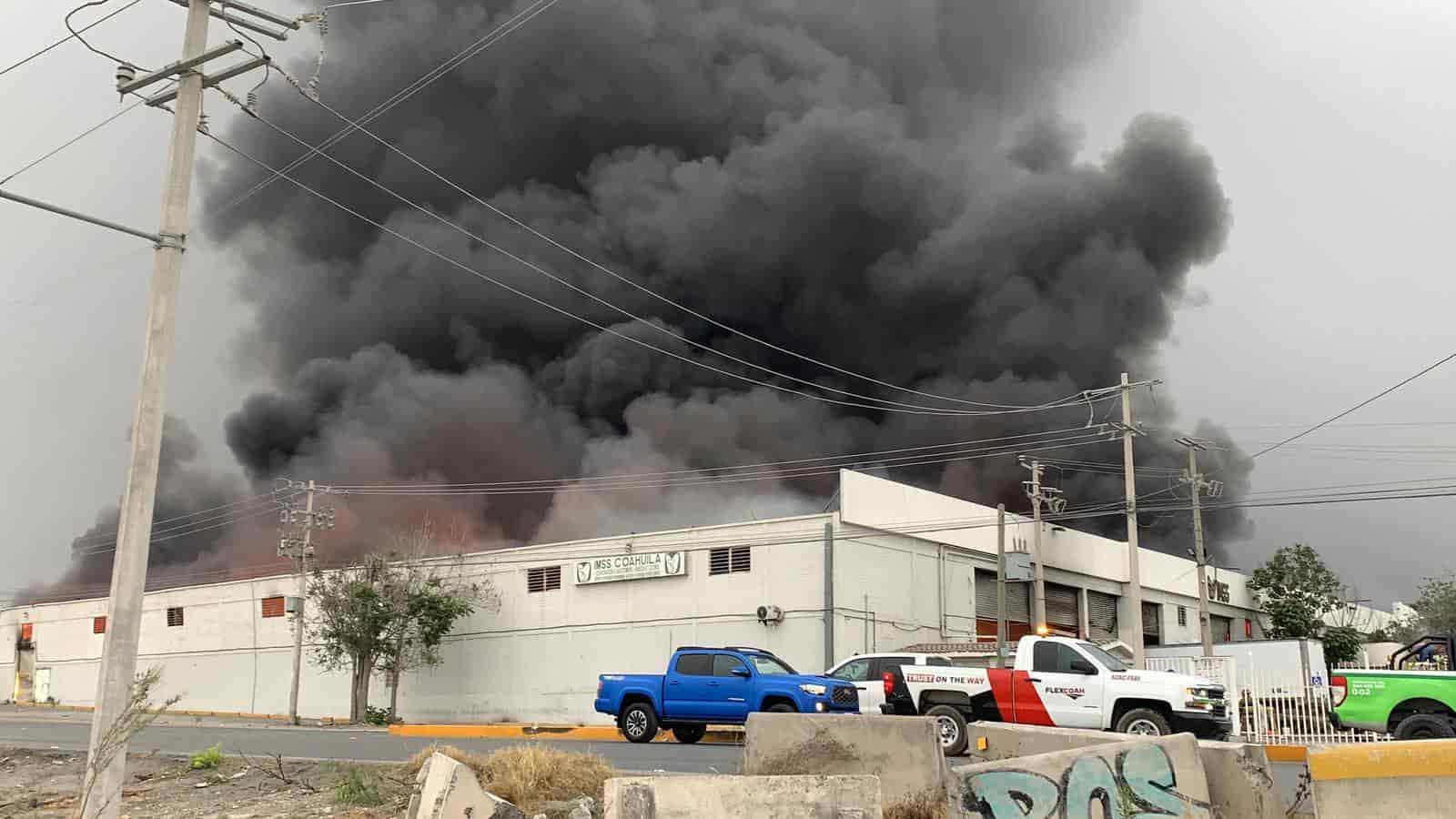 SALTILLO, COAH.- Aproximadamente a las cinco de la tarde de este martes un fuerte incendio inició en las bodegas del Instituto Mexicano del Seguro Social ubicadas en el Libramiento Óscar Flores Tapia en Saltillo.