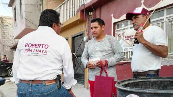 “Se ve, se siente, Piña está presente”, “cuchillo, navaja, Piña no se raja” se escucha entre la gente mientras el candidato saluda a las amas de casa que lo reciben y les pide su apoyo para que voten Todo Morena este 2 de junio y le permitan seguir al frente de la administración.