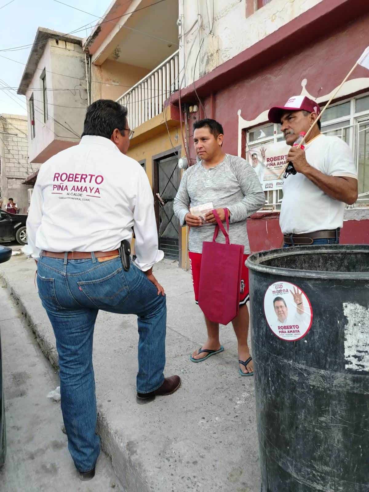 Recorriendo las calles de la colonia Americana, el abanderado morenista, Roberto Piña Amaya sigue con paso firme pidiendo el voto de la gente para que le permita seguir su plan de gobierno en el siguiente trienio.