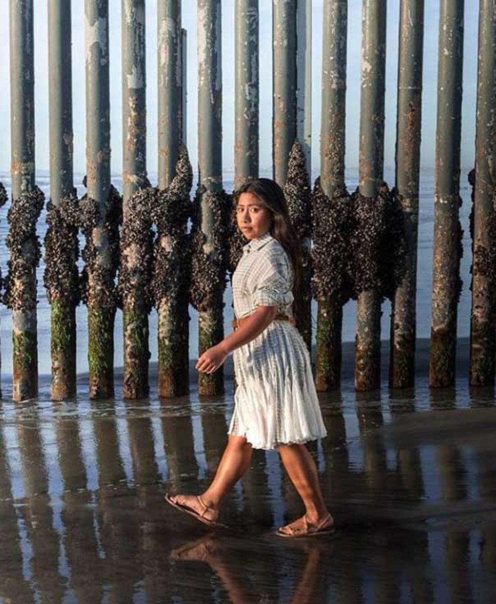 Yalitza Aparicio, quien interpreta al personaje de Cleo en la película Roma, fue retratada en el muro fronterizo entre México y Estados Unidos por el fotógrafo