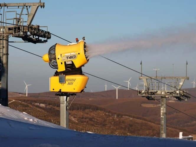 Los organizadores hacen valer que los cañones son accionados por electricidad de origen renovable y que el agua regresará al suelo cuando la nieve se funda.