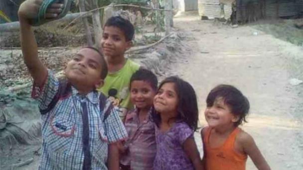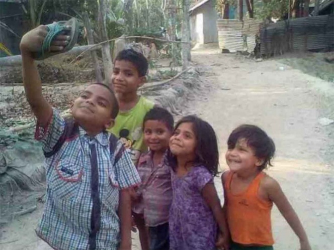 Una hermosa fotografía que retrató a un grupo de niños intentando tomarse una