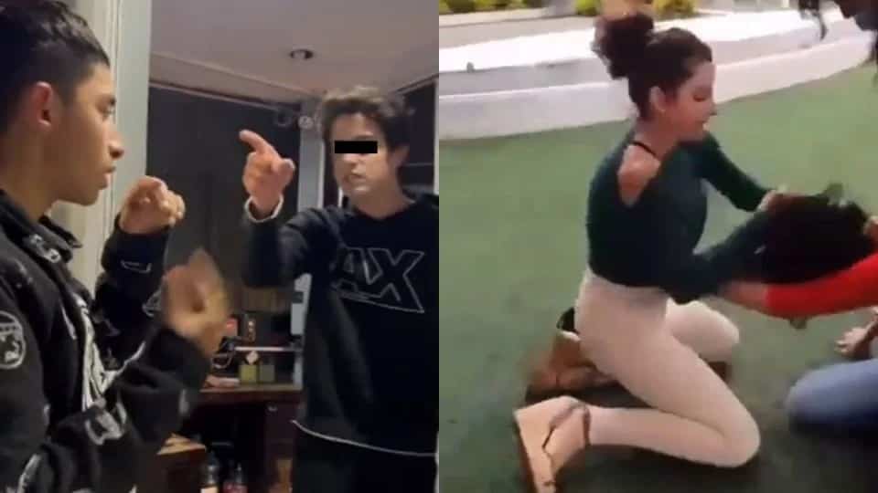 es cayeron al suelo, y desde ahí continuaron atacándose, siendo Fernanda (blusa roja) la más afectada.