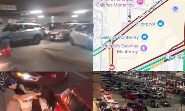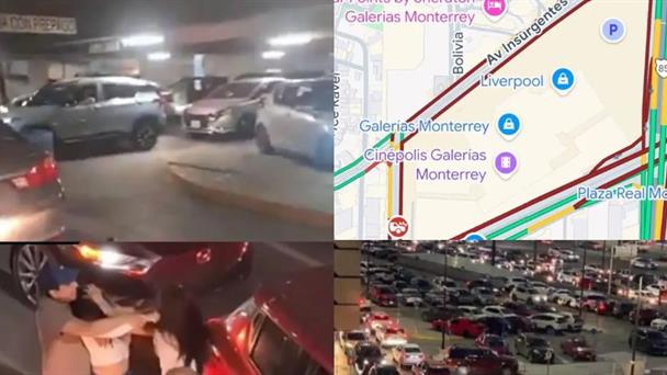 Conocida como Galerías Monterrey, ubicada en la avenida Insurgentes #2500, de la colonia Vista Hermosa, al poniente de Monterrey, Nuevo León, se vivió un fin de semana de tráfico intenso, pelea entre dos mujeres y dos horas de espera dentro del estacionamiento de la plaza comercial para salir.