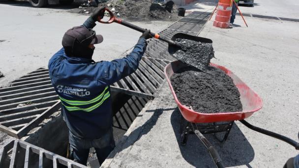 Brigadas de la Dirección de Infraestructura y Obra Pública trabajaron en la limpieza general y desazolve de las rejillas pluviales que se ubican en el cruce de las calles Pedro Ampudia y Mariano Salas, de la colonia La Minita.
