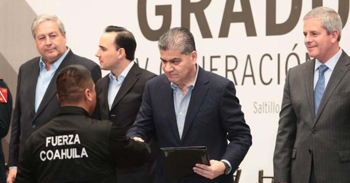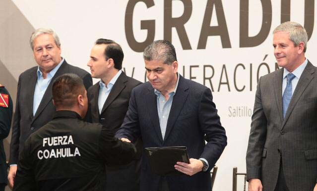 “Nuestras policías son un orgullo para Coahuila”, aseguró el gobernador Miguel Ángel Riquelme Solís durante la ceremonia de graduación de la Quinta Generación de la Policía Estatal, al tiempo de entregarles sus certificados a 50 elementos: siete mujeres y 43 hombres.
