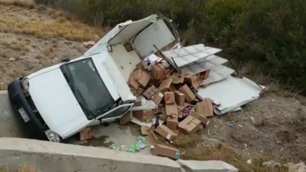 El conductor de nombre Jesús Manuel Vaquera Briones de 30 años viajaba en un camión Nissan con el número económico 35900 y se identificó como trabajador de la empresa Barcel, mismo que terminó volcándose en la carretera 2 en el kilómetro 9.
