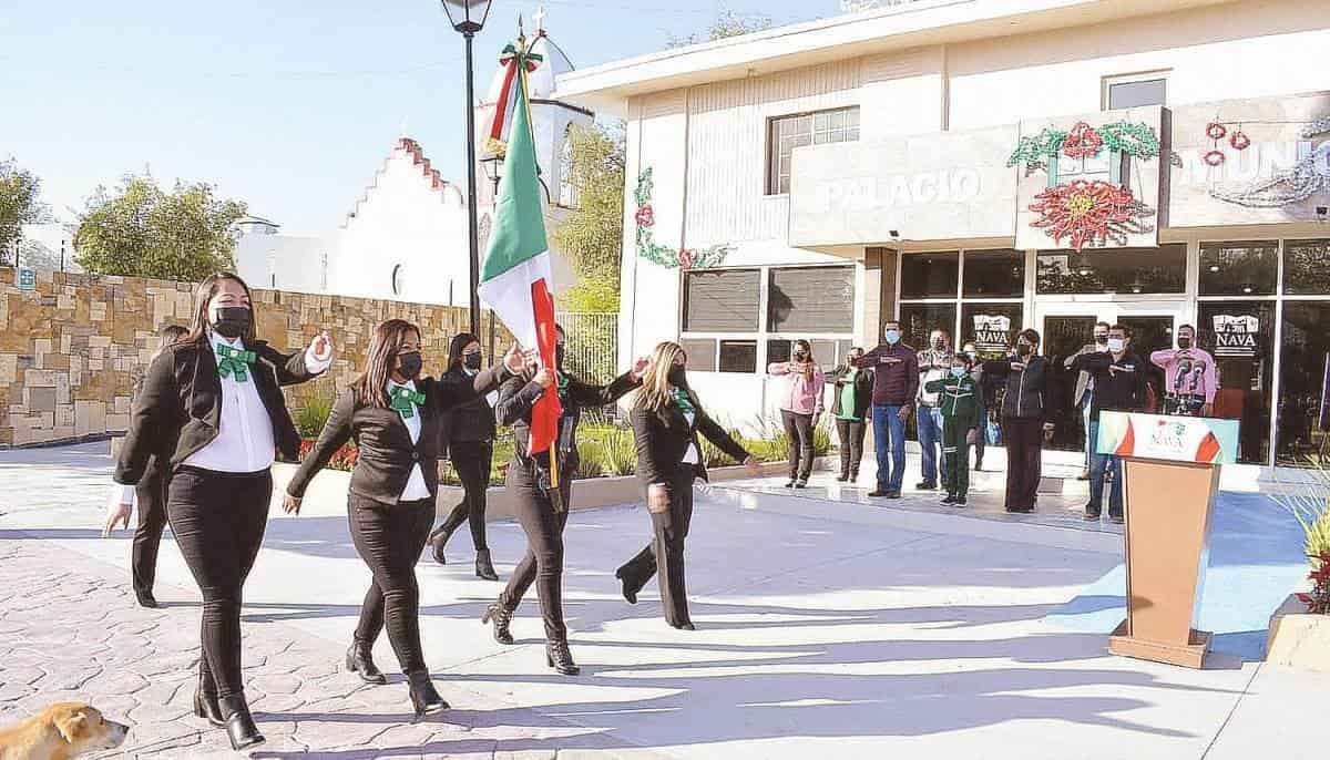 Nava, Coah.- Este sábado se llevo a cabo una pequeña ceremonia cívica por parte del grupo de funcionarios de la administración municipal 2019–2021 de Nava, que encabeza el alcalde Sergio Velázquez Vázquez, para conmemorar el “111 Aniversario de la Revolución Mexicana”.