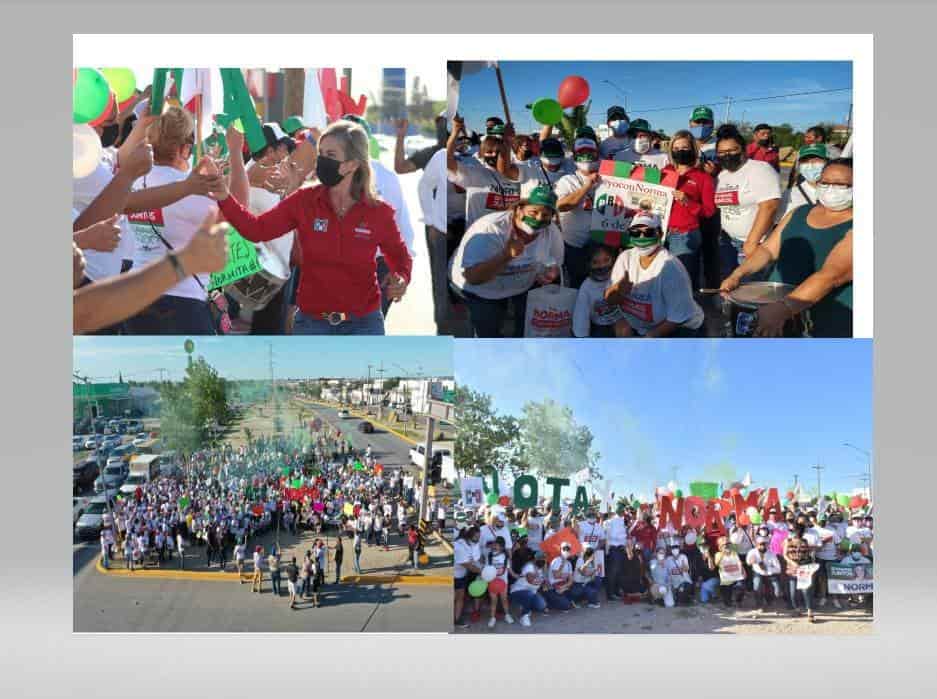 PIEDRAS NEGRAS, COAH. - Abanderando un proyecto de gobierno municipal en el que todos los nigropetenses estén incluidos, Norma Treviño Galindo, candidata del PRI a la Alcaldía, encabezó un Mega Crucero en el que se reafirmó la fuerza, la unidad y el buen ambiente de su partido, que se declara listo para obtener el triunfo el domingo 6 de junio.