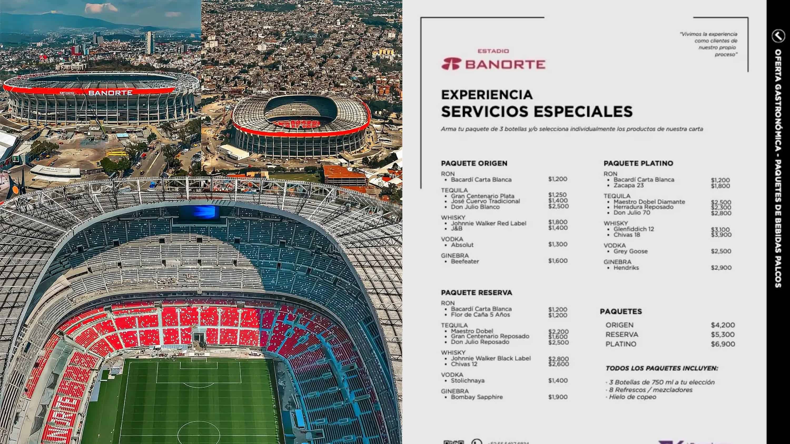 En cuanto a las bebidas, una cerveza individual tendrá un costo de 190 pesos, mientras que el paquete de seis alcanzará los 600 pesos. Además, se ofrecerán paquetes de botellas de alcohol que van desde los 4,200 hasta los 6,900 pesos.