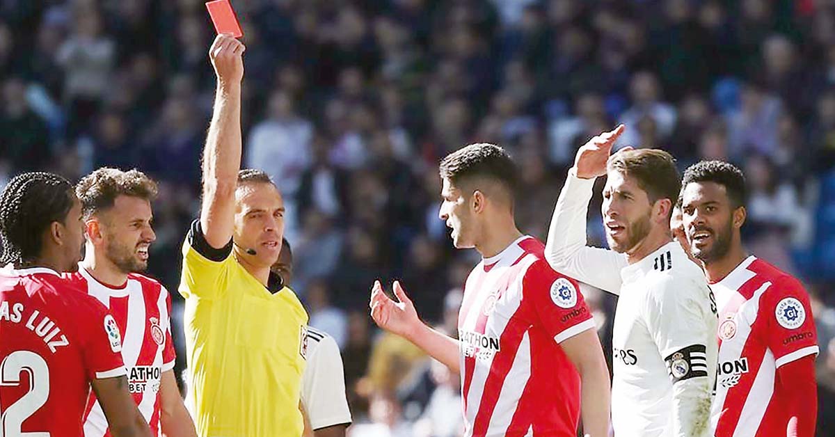 Para el Madrid fue una tarde para el olvido y la cerró con la expulsión de su capitán Ramos, quien después de intentar un remate que fue sancionado por juego brusco con su segunda tarjeta amarilla. El conjunto merengue cayó en tal irregularidad que su mejor opción para empatar llegó en el tiempo de reposición cuando Courtois se sumó al ataque para un tiro de esquina y logró un cabezazo que pasó apenas a un lado del marco.