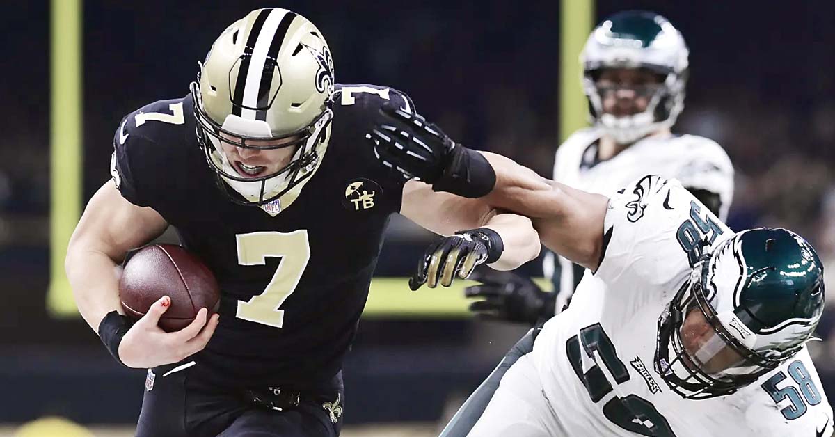 Los Santos de Nueva Orleans remontaron una desventaja de 14-0 para ganar 20-14 a las Águilas de Filadelfia y avanzar a la Final de la NFC, donde enfrentarán a los Carneros. Filadelfia estaba sorprendiendo a los Santos en su casa con dos touchdown en el primer cuarto, con pase de anotación de Nick Foles y un acarreo del propio quarterback.