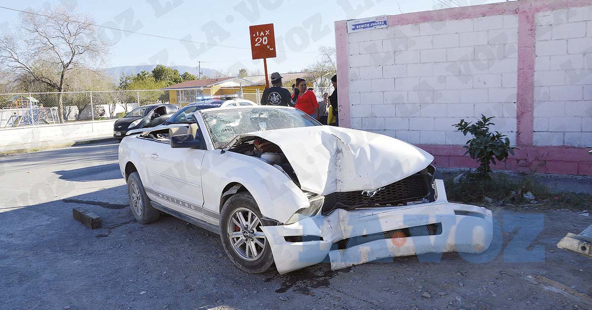 De acuerdo a elementos de Control de Accidentes, el conductor del auto deportivo marca Ford Mustang, color blanco, tipo convertible, se desplazaba a exceso de velocidad, por la avenida Leandro Valle con dirección al sur.