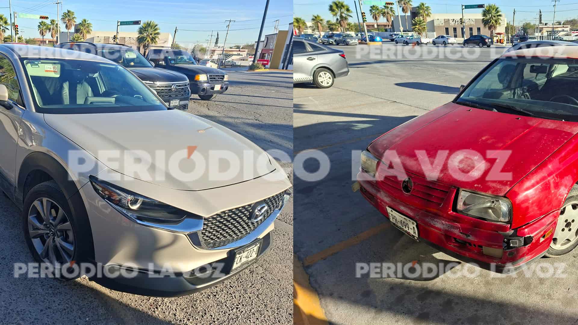 El percance se registró en el cruce de la calle Ecuador y el bulevar Harold R. Pape, cerca de las 08:30 horas, cuando un Volkswagen Jetta de modelo antiguo, en color rojo, conducido por Alberto, descendía hacia la principal arteria de la ciudad y, al intentar incorporarse hacia el sur, terminó invadiendo el carril de circulación de una camioneta Mazda de modelo reciente, en color gris.