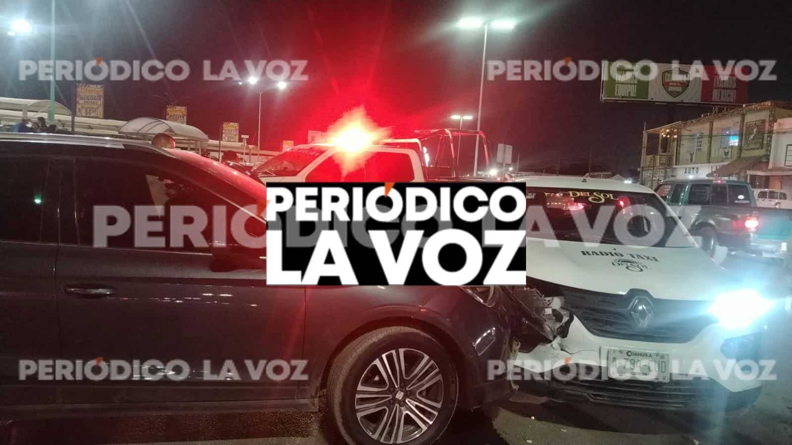 MONCLOVA, COAH.— Un fuerte accidente vial registrado la noche de este jueves sobre el bulevar San José dejó como saldo un taxista lesionado y una conductora con crisis nerviosa, además de cuantiosos daños materiales y una intensa movilización de cuerpos de emergencia.