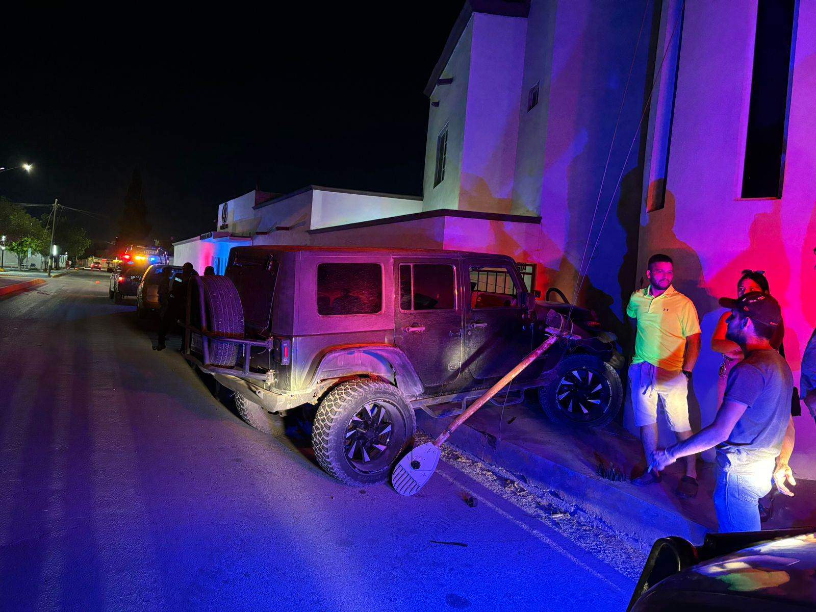 El choque que dejó como saldo considerables daños y una persona en crisis nerviosa ocurrió alrededor de las 21:50 horas, cuando el conductor del Jeep se desplazaba a excesiva velocidad por el bulevar Tecnológico pero al llegar al cruce con la calle Hipócrates, perdió el control, se llevó de encuentro una luminaria para luego dar un giro, subirse a la banqueta y chocar contra un Nissan Versa.