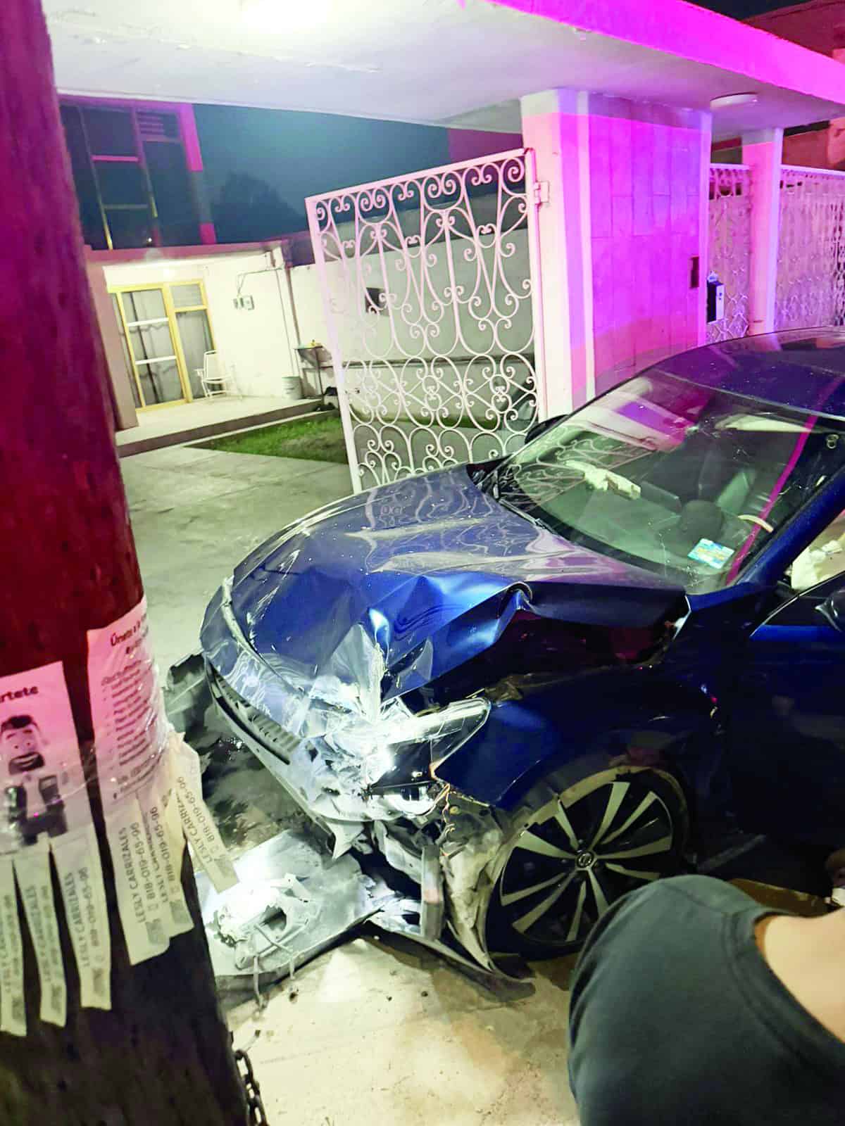 MONCLOVA, COAH.- La madrugada de ayer se vio sacudida por un aparatoso accidente que movilizó a corporaciones policiacas y cuerpos de emergencia en la colonia Los Pinos, luego de que un borracho estrellara su auto contra la fachada de una vivienda ajena.