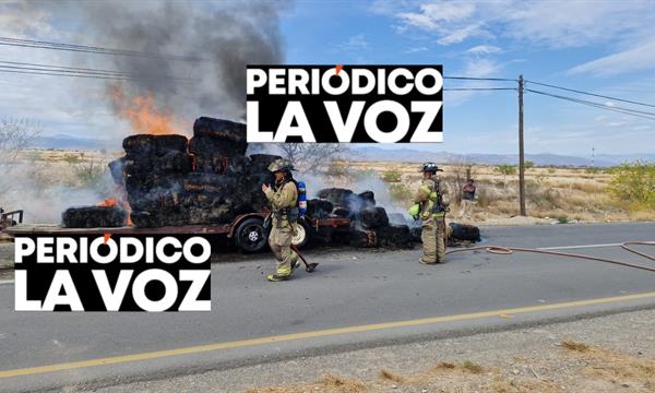 FRONTERA, COAH.— Un fuerte incendio registrado la mañana de este martes sobre la carretera federal número 30, a la altura de la colonia Nueva Provincia, terminó por reducir a cenizas un cargamento de alrededor de 150 pacas de alfalfa que eran trasladadas en una camioneta tipo tráiler. Afortunadamente, no se reportaron personas lesionadas.