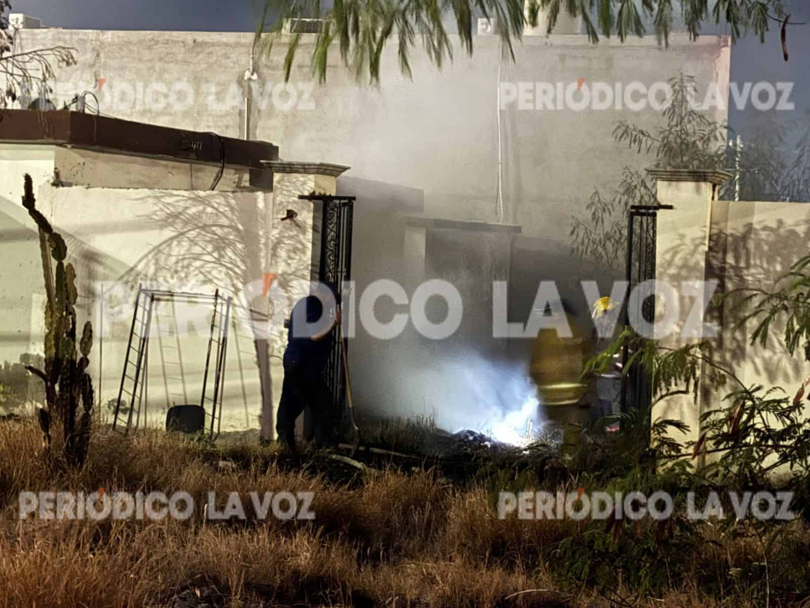 El siniestro fue reportado en el cruce de las calles Saltillo y Durango, hasta donde arribaron elementos del Heroico Cuerpo de Bomberos a bordo de una unidad con motobomba de ataque rápido.