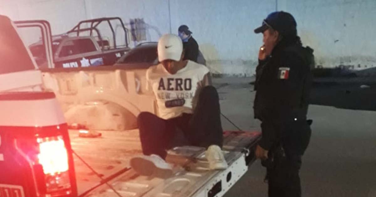 Al llegar, los elementos tuvieron que someter al sujeto que se negó a decir palabra alguna, solo tiraba de manotazos a los oficiales, y entre sus ropas traía un cuchillo con el que tenía amagada a su esposa.