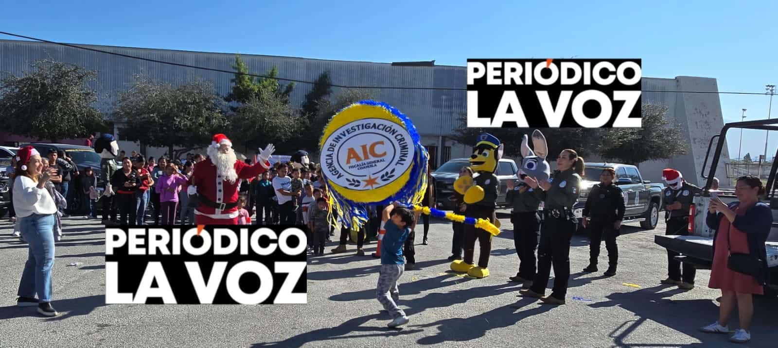 MONCLOVA, COAH.— Lejos de las investigaciones y los operativos, detectives de la Agencia de Investigación Criminal (AIC) cambiaron por unas horas el rigor de su labor para regalar una mañana llena de alegría a niñas y niños de Monclova, durante una emotiva posada navideña realizada en el estacionamiento del gimnasio Milo Martínez de la Rosa.