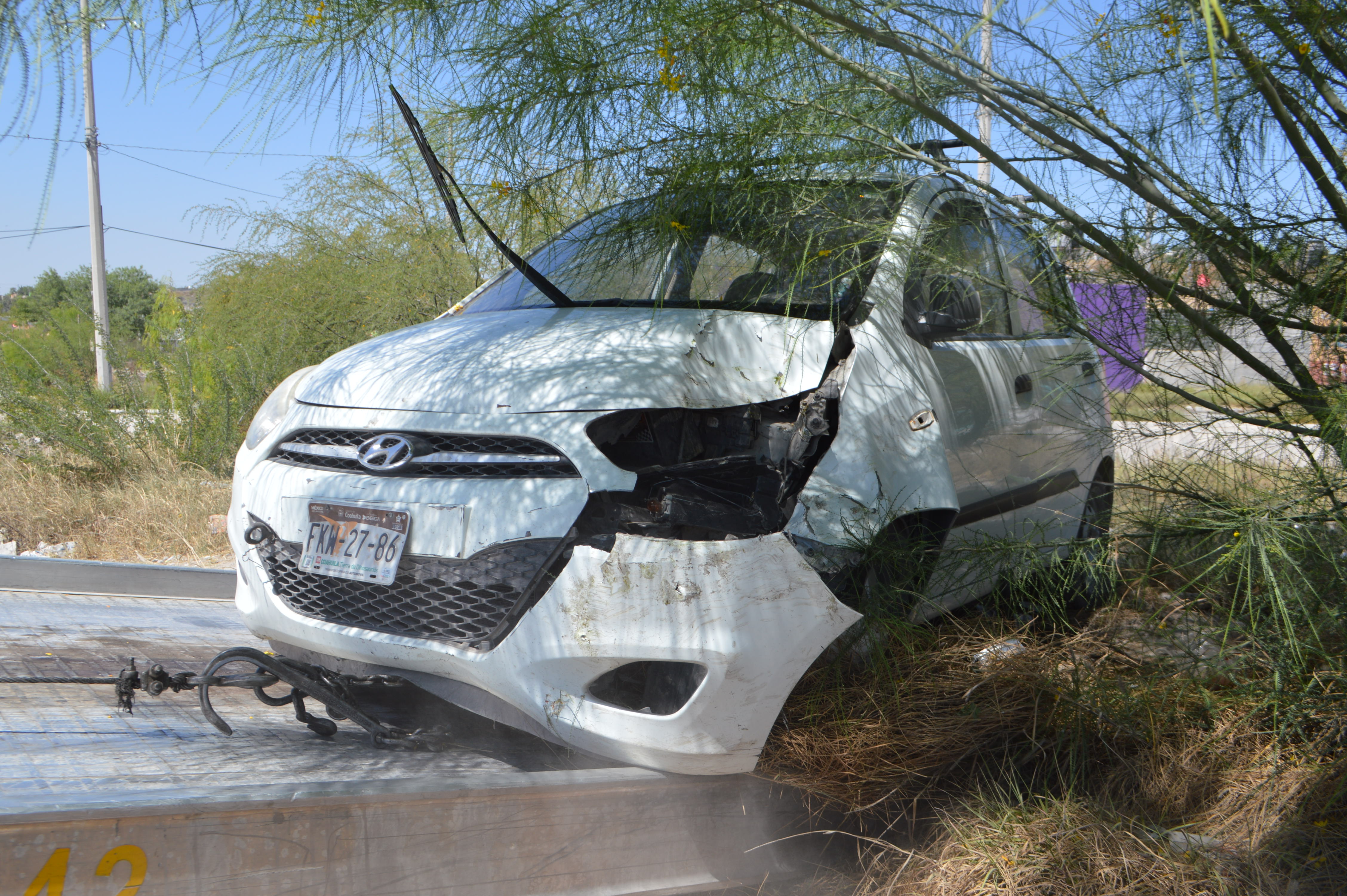 El conductor perdió el control al esquivar un taxi y acabó por estrellarse contra un huizache.
