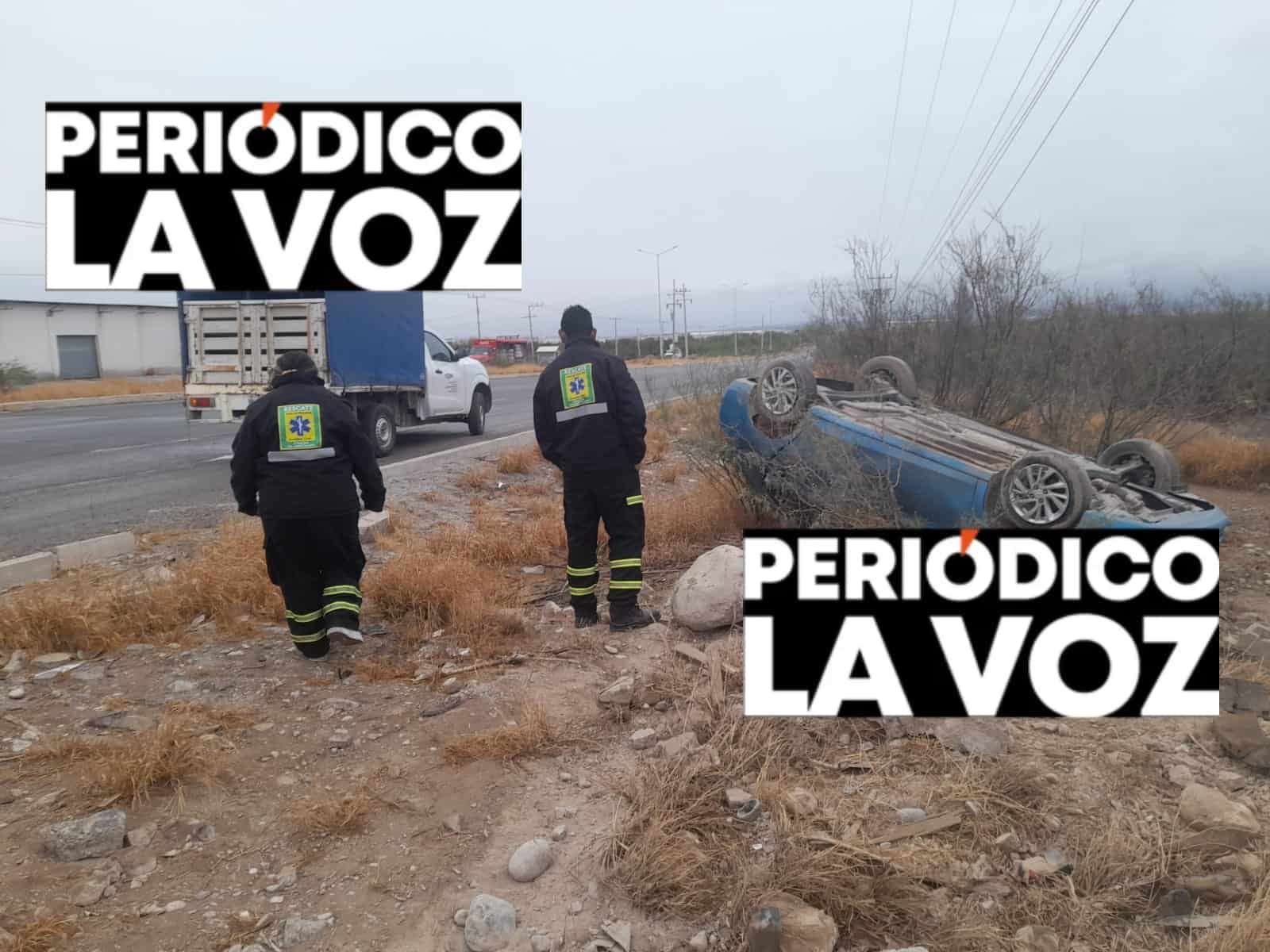 FRONTERA, COAH.— Un hombre de 29 años resultó con algunos golpes luego de volcar el automóvil que conducía a orillas del Libramiento Carlos Salinas de Cortárea, a la altura de la empresa Takata, lo que provocó la movilización de corporaciones de auxilio y seguridad, esta mañana.