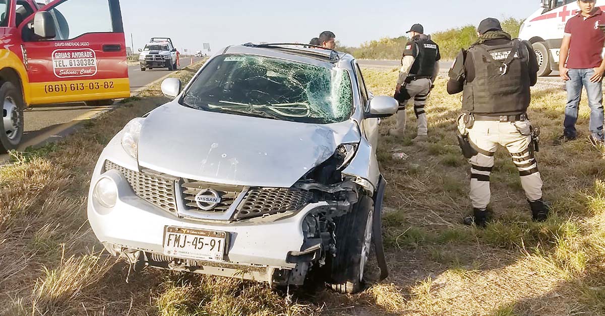 Vuelcan hermanos en carretera a Sabinas
