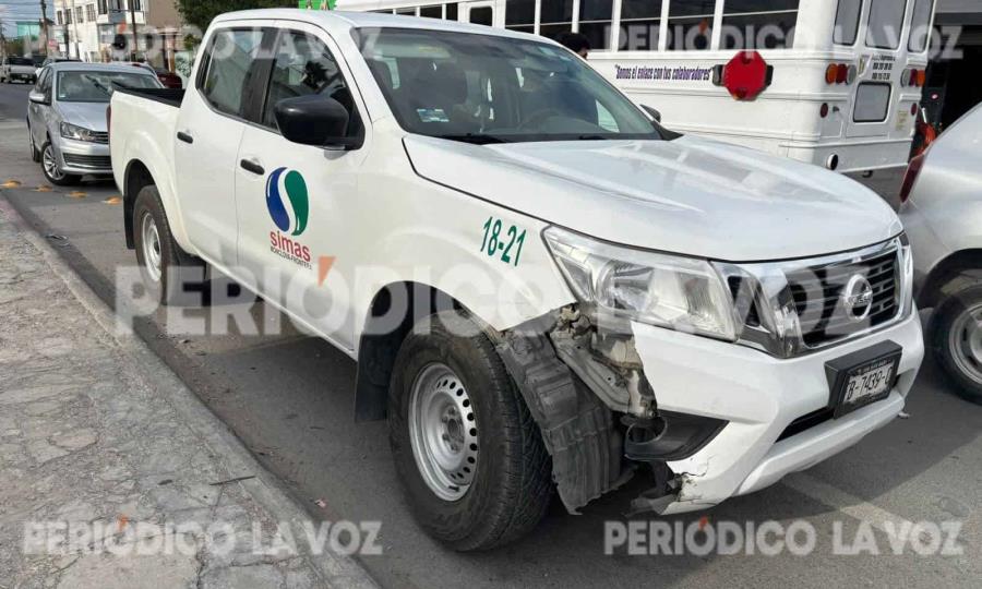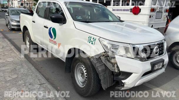 La imprudencia de una conductora que realizó una vuelta en ‘U’ terminó en accidente vial la tarde de ayer, en la colonia El Pueblo, donde se atravesó al paso de una camioneta del Sistema Intermunicipal de Aguas y Saneamientos (SIMAS).
