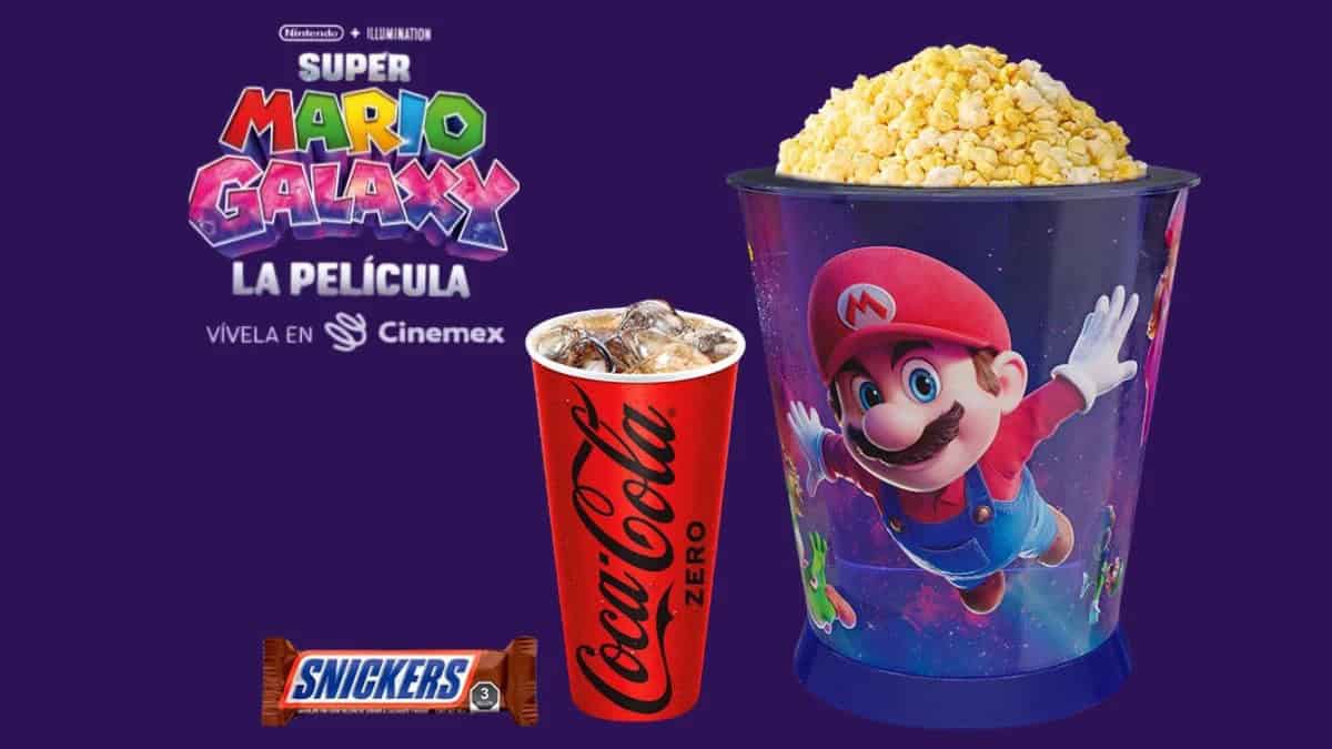 Por otro lado, el Combo Super Mario Galaxy tiene un precio de 760 pesos e incluye una cubeta promocional, palomitas grandes, un vaso con refresco y un chocolate. Este paquete está pensado para los coleccionistas y fans más entusiastas del personaje.