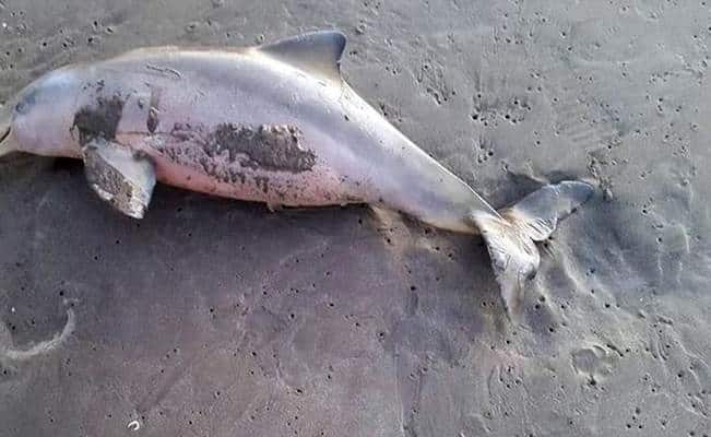 El cadáver del delfín que media alrededor de 1.4 metros, fue descubierto por un equipo de monitoreo ambiental en una playa en Itapoa.