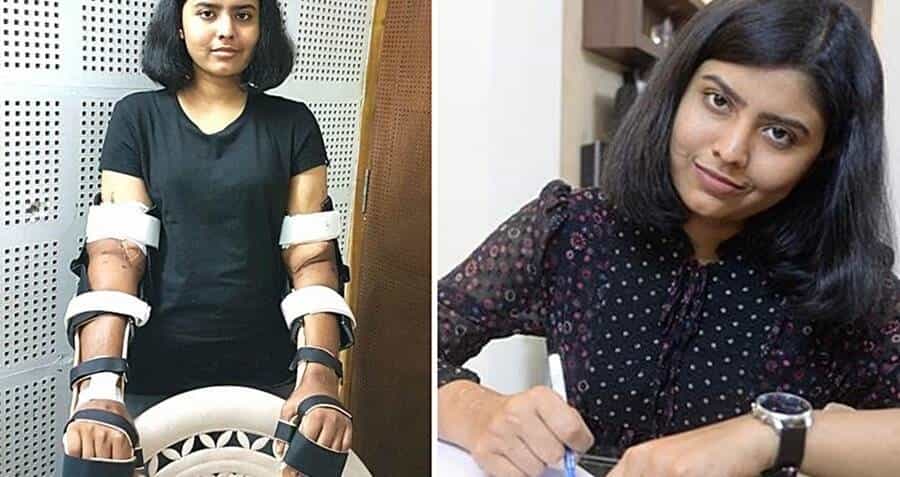 Shreya Siddanagowda, es una joven que a sus 18 años sufrió un accidente que causó la pérdida de sus extremidades, en la India.