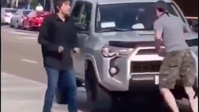 Tras perseguir e intentar agredir al joven asiático, el hombre es noqueado por su víctima a pesar de estar a mitad de la calle.