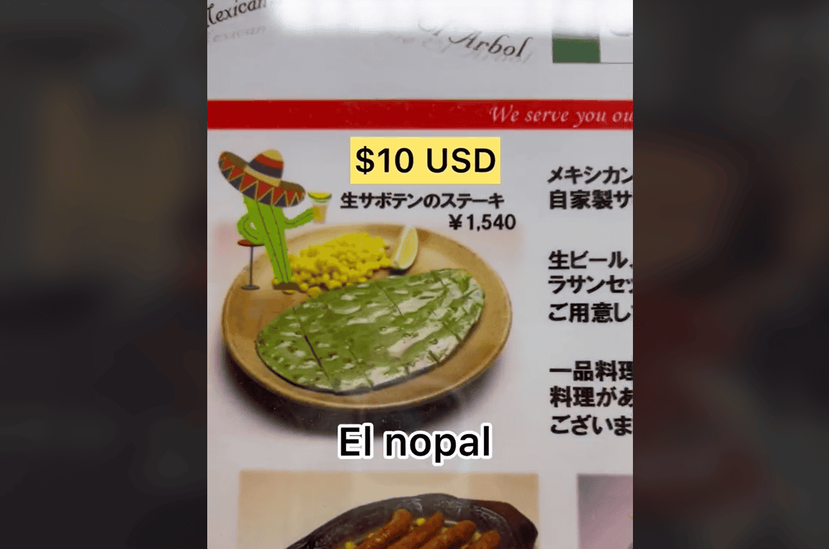 Por medio de sus redes sociales, la influencer japonesa Yukita chan, dio a conocer que los nopales, ya llegaron a Japón, pero la gran diferencia con nuestro país, es que en la nación del sol naciente, un nopal asado se vende por 200 pesos mexicanos.
