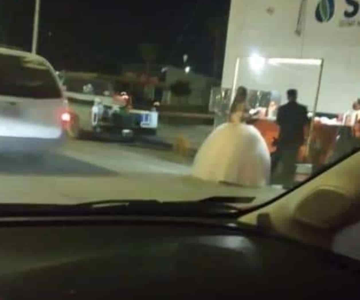 Fue un usuario de Facebook quien, al percatarse de la inusual pero conmovedora situación, no dudó en captar a la pareja y compartir la imagen con todos sus amigos en redes sociales. La foto está tomada desde la parte interior de un automóvil; mientras que del lado derecho están parados la novia y el novio, aún vestidos con sus atuendos de la boda, disfrutando de su orden de tacos.